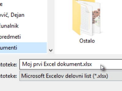 ![]() V oknu raziskovalca vpišite poljubno ime datoteke in izberite Shrani.