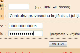 Vpišite svoje podatke in geslo, ki ste ga dobili v knjižnici.