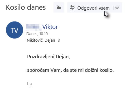 ![]() Preberite sporočilo in nato kliknite na gumb Odgovori vsem. |