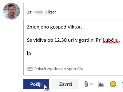 ![]() Sestavite sporočilo in pošljite sporočilo tako, da kliknete na gumb Pošlji. |