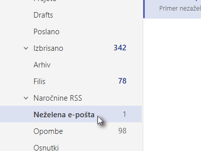 ![]() V tej mapi se bodo nahaja vsa neželena sporočila.