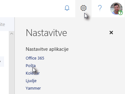 Če pa želite pravilo izbrisati ali popraviti nastavitve, pa kliknite na ikono za nastavitve (glej sliko) in nato Pošta.