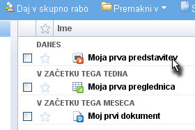 Predstavitev je shranjena in se nahaja v glavnem oknu Dokumenti.