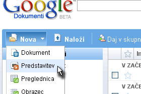 Kliknite na Nova in izberite Predstavitev. |
