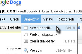 Kliknite nato na Diapozitiv in izberite Nov diapozitiv.