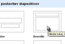 Odpre se vam okno z vnaprej ustvarjenimi diapozitivi, kjer kliknite na poljubnega.