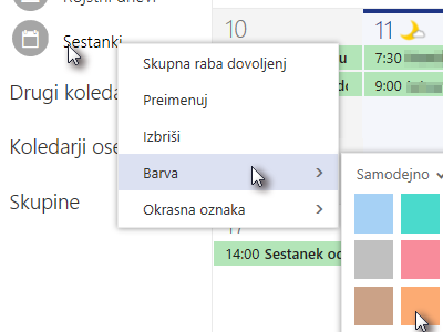 ![]() Vpišite novo ime za koledar, potem nanj kliknite z desnim miškinim gumbom, izberite barva in nastavite poljubno barvo, da boste imeli bolje organizirano delo. |