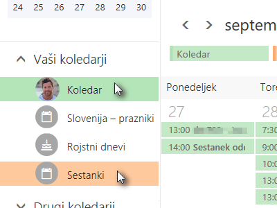 ![]() Z miško označite novo nastale koledarje, da se vam bodo prikazali v glavnem oknu (glej sliko). |