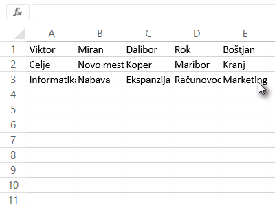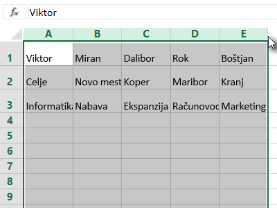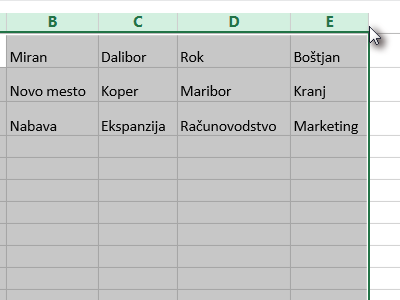 ![]() Sedaj na podoben način označite vse stolpce od A do E (glej sliko). |