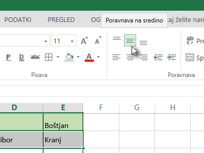 ![]() In poravnajte vsebino na sredino tako, da kliknete na ikono Poravnava na sredino. |