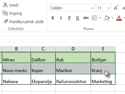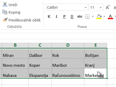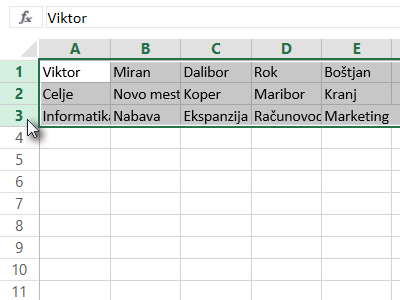 ![]() Z miško označite vse celice s podatki (glej sliko). |