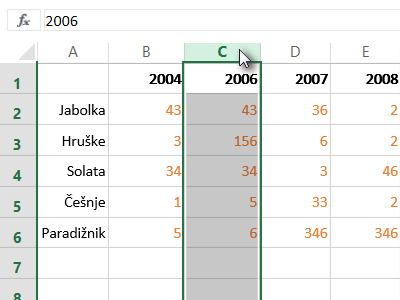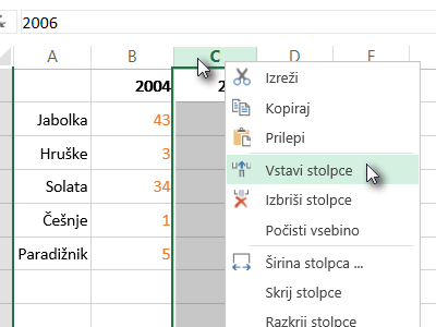 Označite celoten stolpec pred stolpcem, kjer boste dodali novega (glej sliko).