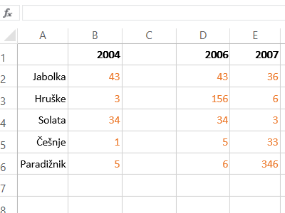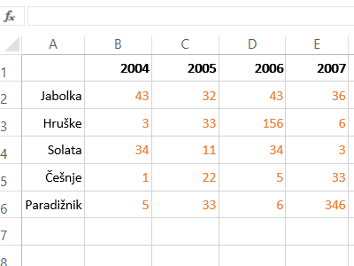 Torej imejte neke poljubne številke v celicah in dodajte še na vrhu legendo v obliki letnic in podobno (glej sliko).
