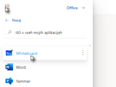 V Office storitvah kliknite na prikaz vseh aplikacij in nato poiščite Whiteboard.