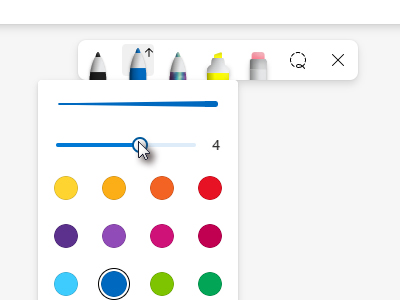 ![]() Če boste na pisalo držali dlje časa, boste lahko nastavili velikost in barvo pisala. |