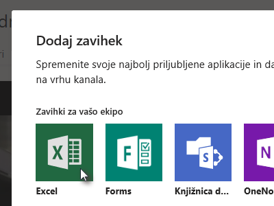 ![]() Kliknite ponovno nato ikono za dodajanje zavihkov in tokrat izberite na primer Excel (glej sliko). |