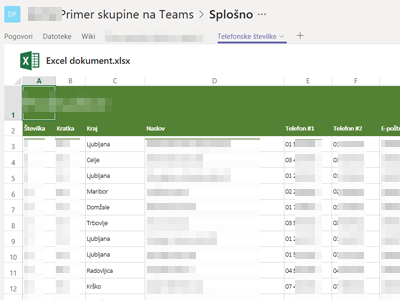 ![]() V tem primeru sem v kanalu dodal zavihek, kjer lahko člani takoj prikažejo razpredelnico.