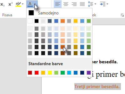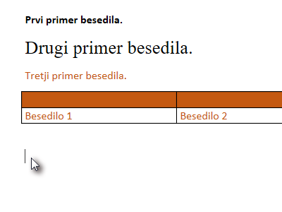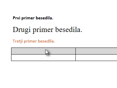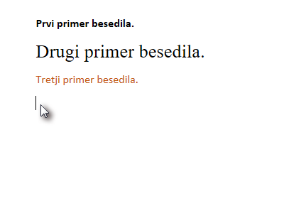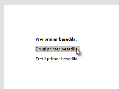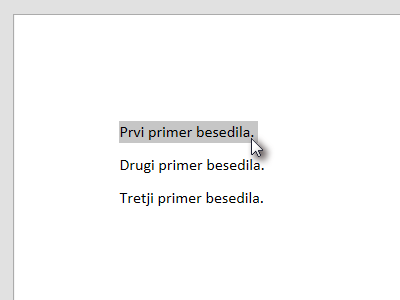 Potem pa napišite poljubne tri vrstice besedila in z miško označite prvo vrstico (glej sliko).