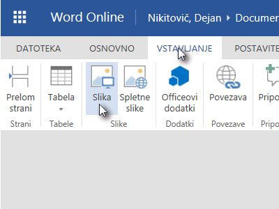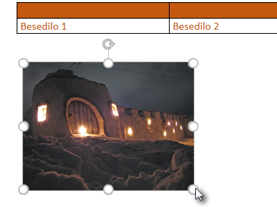 ![]() Sliko, ki ste jo ravnokar dodali na dokument, lahko z miško primete za robove in ji po želji spreminjate velikost.