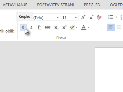 ![]() Kliknite na ikono Krepko, da boste označeno besedilo odebelili.