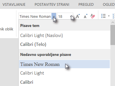 ![]() Nastavite drug tip pisave v orodni vrstici in tudi njeno velikost.
