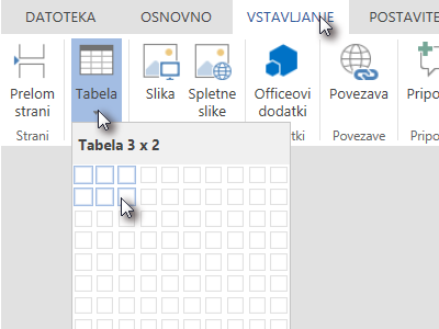 Potem na ikono Tabela in z miško nastavite število celic v tabeli (glej sliko).