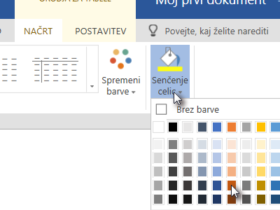 ![]() Kliknite na ikono Senčenje celic in izberite poljubno barvo.