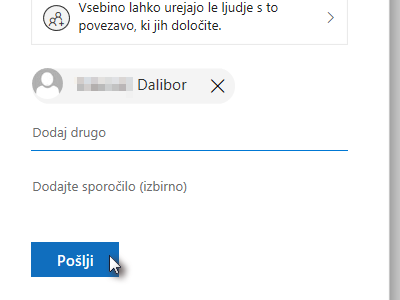 ![]() Ko boste dodali vse sodelavke in sodelavce, s katerimi bi radi urejali dokument, kliknite na gumb Pošlji. |