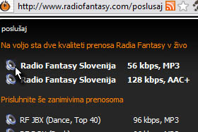 Izberite frekvenco Radio Fantasy slovenija 56kbps MP3. |