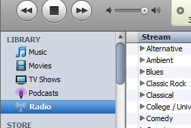 V iTunes lahko poslušate tudi radie vseh držav in vseh zvrsti. To storite tako, da v zgornjem levem kotu iTunes kliknete na-Radio. |
