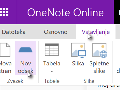 ![]() Kliknite na zavihek Vstavljanje in nato Nov odsek. |