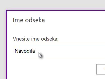 ![]() Nov odsek imenujte po želji in potrdite s klikom na gumb V redu. |
