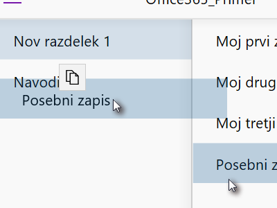 ![]() Poljuben zapisek z miško primite in ga povlecite v nov razdelek (glej sliko).