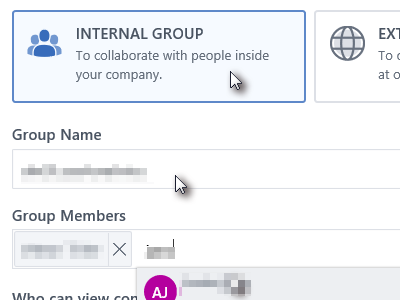 ![]() Ko se vam prikaže nova stran, označite Internal group, saj je skupina namenjena sodelavcem in ne tudi zunanjim ljudem.