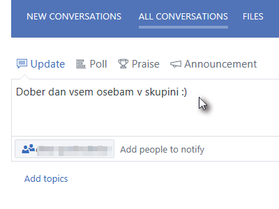 ![]() Sedaj lahko tudi napišete svojo prvo objavo (glej sliko). |
