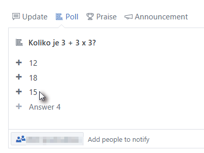 ![]() Če označite Poll, lahko dodajate tudi anketna vprašanja. |