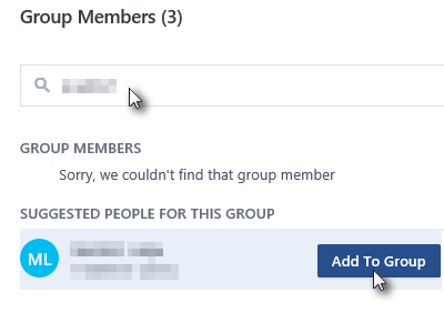 ![]() Osebe lahko dodajate z iskanjem po priimku ter jih včlanjujete s klikom na gumb Add To Group.