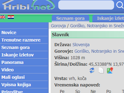 Na www.hribi.net poiščite želeno destinacijo, ki jo želite osvojiti.