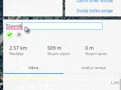![]() In nato končno točko. V mojem primeru je to Slavnik. Garmin bo samodejno izbral najbolj primerno pešpot in vam tako olajšal delo. |