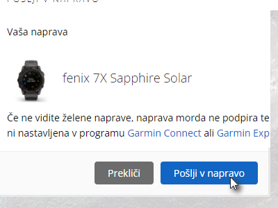 ![]() Potrdite na Pošlji v napravo. Če imate drugo Garmin napravo, improvizirajte malo. |