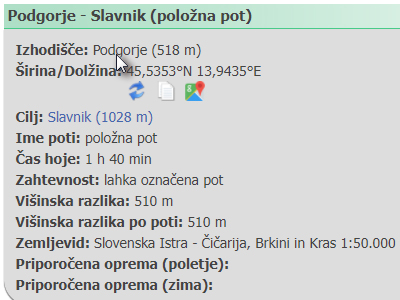 ![]() Zapomnite si izhodišče. V mojem primeru je to Podgorje, ki vodi na Slavnik. |