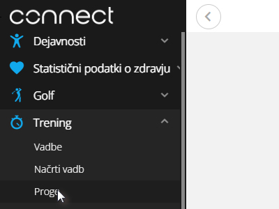 ![]() Odprite Garmin Connect in se prijavite. Kliknite na Trening in izberite Proge. |
