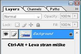 Sedaj postavite miško na layer z besedilom ter jo malo pomaknite v levo (na slikico). Kliknite Ctrl+Alt ter levi gumb na miški, da se besedilo označi.