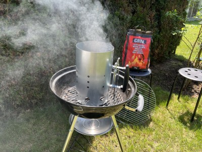 ![]() Pripravite vse potrebno za žar. Potrebujete brikete oziroma oglje ter kamin za prižiganja oglja. Kamin lahko ugodno kupite v spletnih trgovinah. Poiščite "kamin za prižiganje oglja".