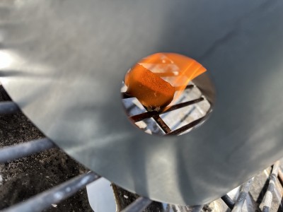 ![]() Oglje se bo enakomerno zaradi oblike dimnika lepo segrelo. |