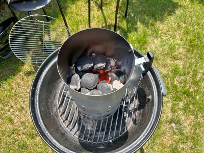 ![]() Počakajte, da se oglje postopoma v celoti segreje in je nared za peko. |