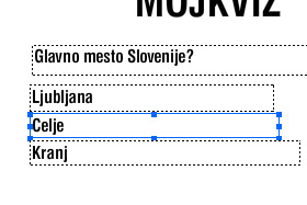 on (release) { gotoAndPlay("02"); } Enako kot pri Celju storite tudi pri Kranju, saj tudi ta ni pravilen odgovor. |