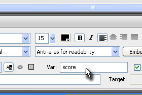 V spodnjem polju nato označite Dynamic Text in Var: score. |