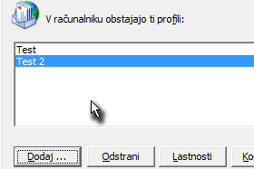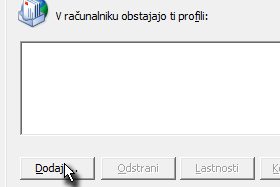 Če nimamo še nobenega profila, kliknemo na gumb dodaj.