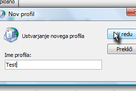 Jaz sem izbral kar Test. Na koncu kliknemo še gumb V redu. |